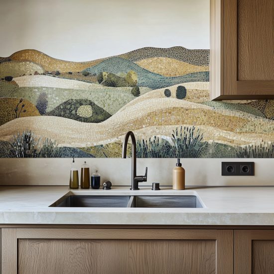 One of the oldest and most durable decorating techniques. Many mosaics, preserved to our days, are more than 2000 years old. It is made of pieces of small (chopped bars of glass) or marble and can have a matte or glossy surface.