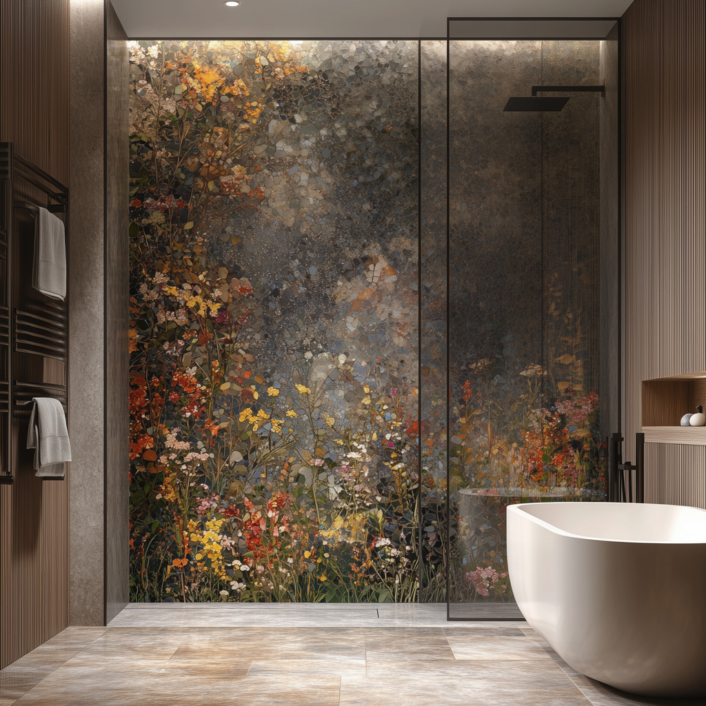 It is made of pieces of rolled stained glass. A more painterly technique. Ideal for small panels inside the interior, landscapes, portraits and jewelry.