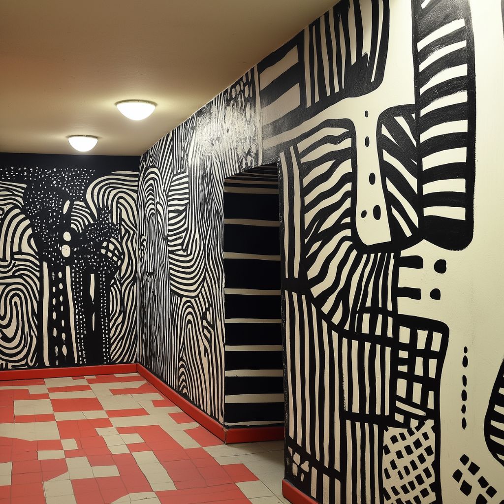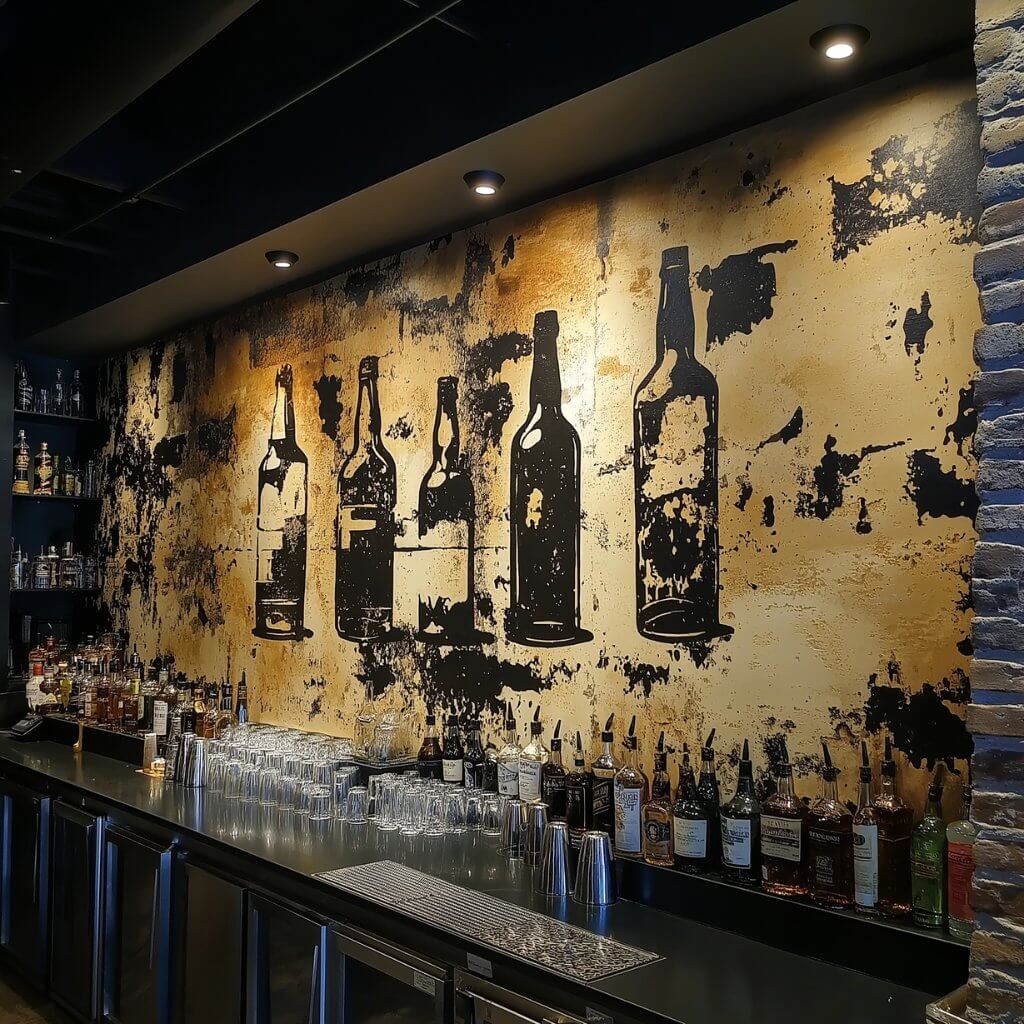 The stencil technique uses pre-designed templates to simplify the process of creating complex patterns and sharp lines. The artist secures the stencil to the wall and applies paint through the cut-out sections. This method is perfect for repetitive designs, logos, typography, or geometric patterns that demand  symmetry and accuracy.