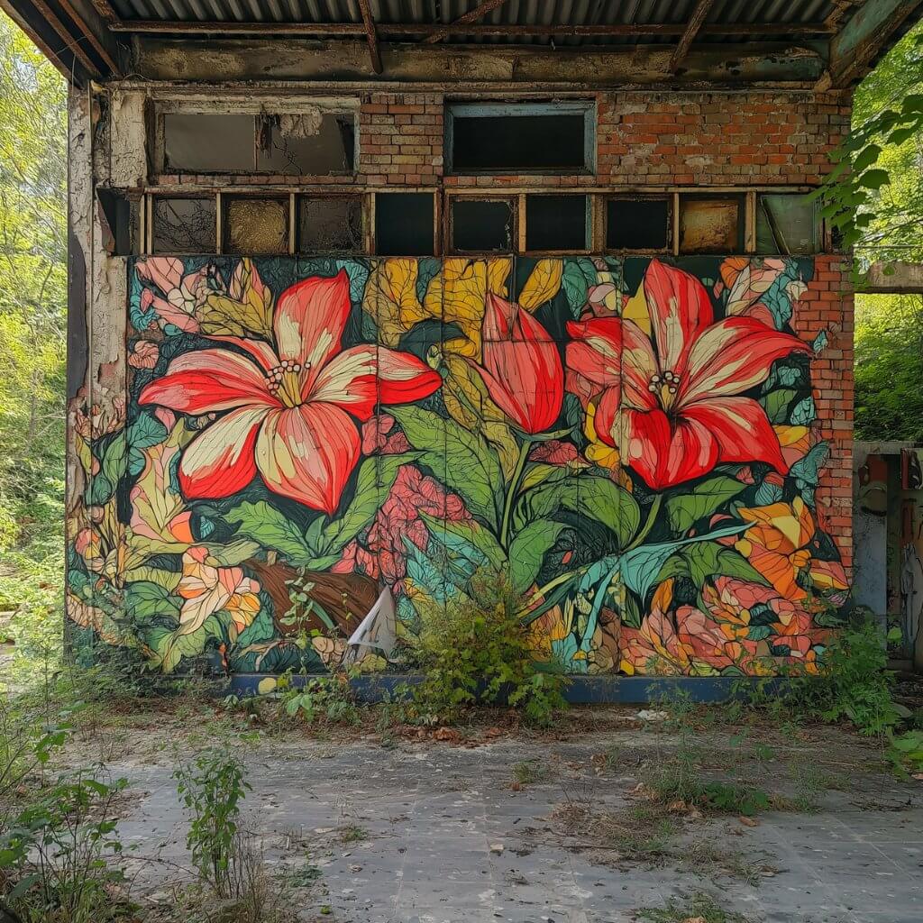 This method involves using spray paint cans, allowed for fast application and the creation of distinctive gradients, transitions, and textures. Graffiti is often used for bold, modern, and expressive designs. It is ideal to cover large surfaces and convey the dynamic energy of street art.
